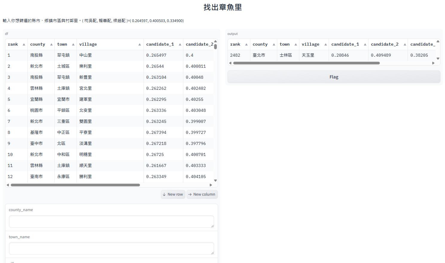 description=f'輸入你想篩選的縣市、鄉鎮市區與村鄰里。( 柯吳配, 賴蕭配, 候趙配 )=( {ko_wu:.6f}, {lai_hsiao:.6f}, {hou_chao:.6f}) ')